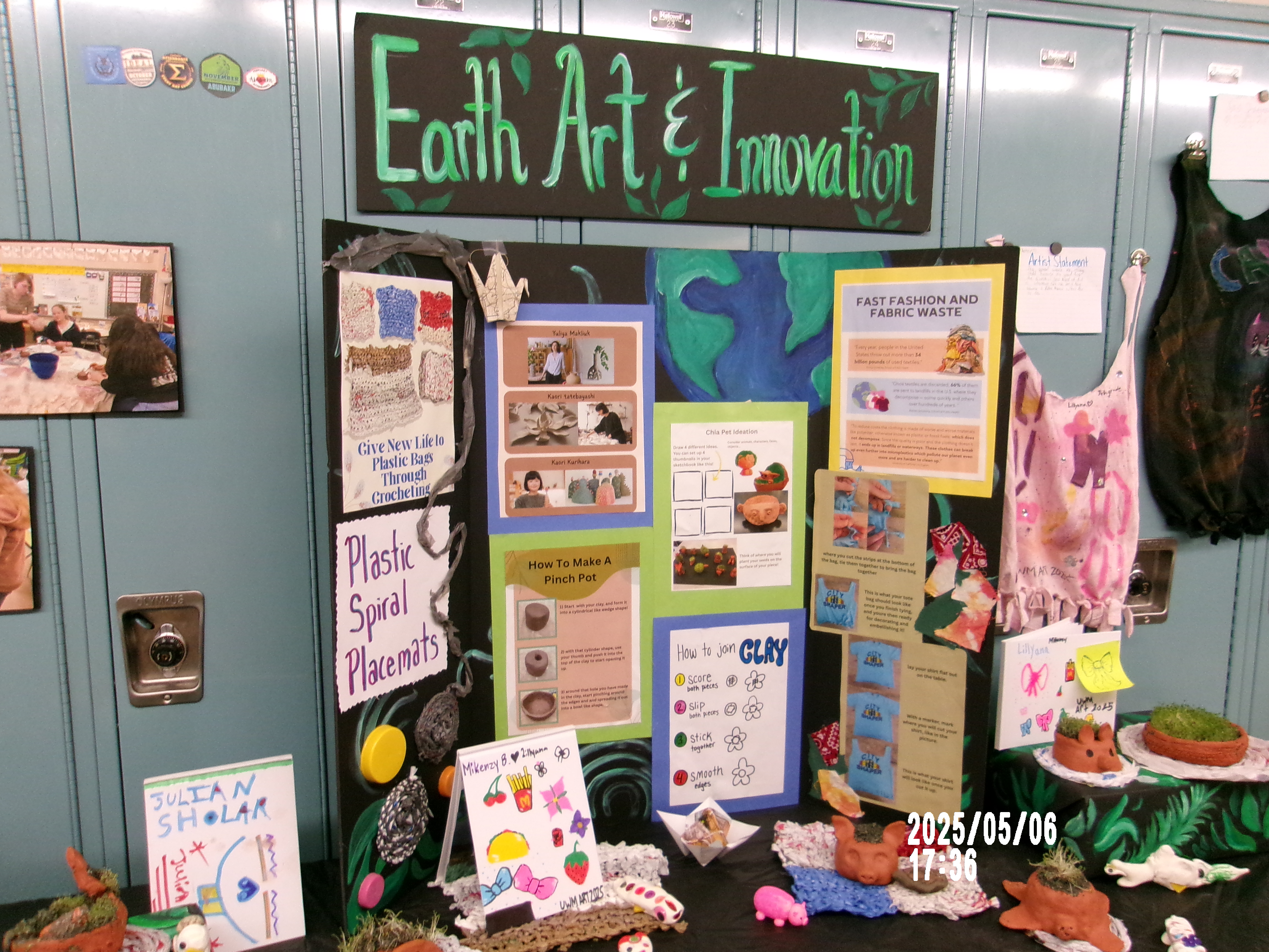 My Co-Op and I’s theme was “Earth Art and Innovation”, where we focused on sustainability, environmentalism, and upcycling to give things another life. We upcycled shirts into reuable tote bags, learned to turn plastic bags into weavings and mats, and learned how to host nature in our chia pet pots!
