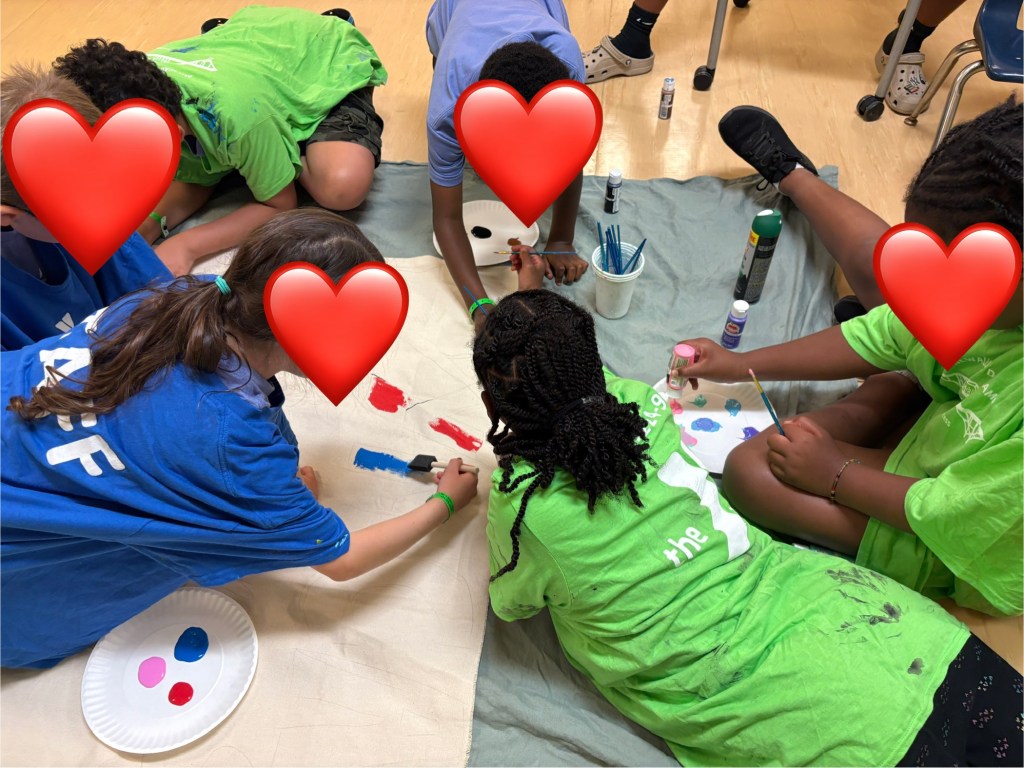 When camp finally began, I faced some challenges getting a few campers engaged. I learned quickly that collaborative projects—like our large group banner—worked best when I gave each child a specific job and a sense of purpose. Saying things like “I need your help finishing this part because you’re the best person for the job!” turned out to be a great motivator, especially for the younger campers who initially struggled to stay interested.